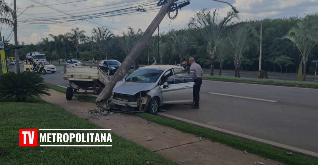 Piracicaba. Por volta das 15h30, um veículo colidiu com um poste, após o