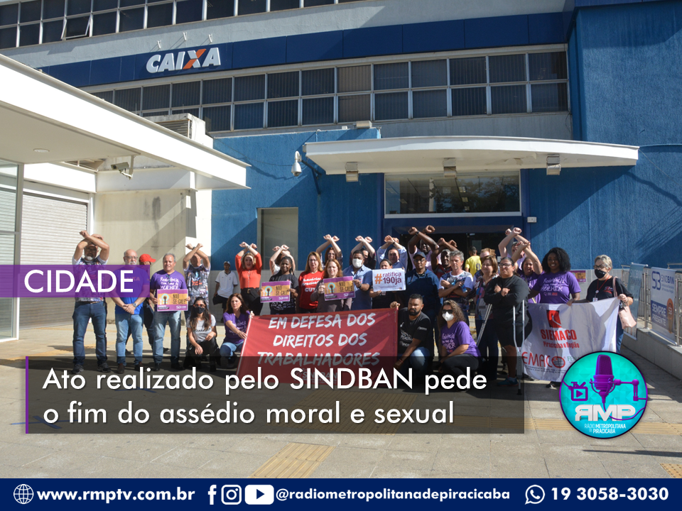 Bancários de Piracicaba e Região (SINDBAN) realizaram na manhã desta terça, 05/07, ato pelo fim do assédio moral e sexual no ambiente de trabalho, em